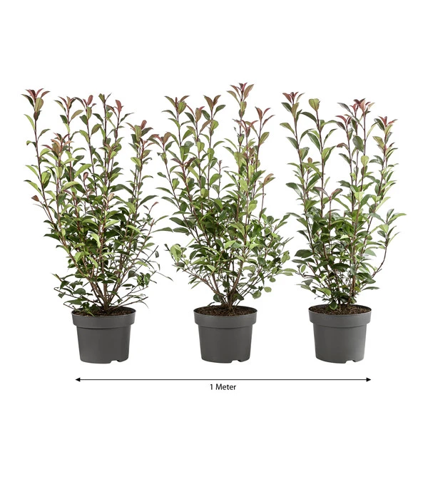 …1 Meter Purpur-Glanzmispel ‚Carre Rouge‘, 3 x 5 Liter