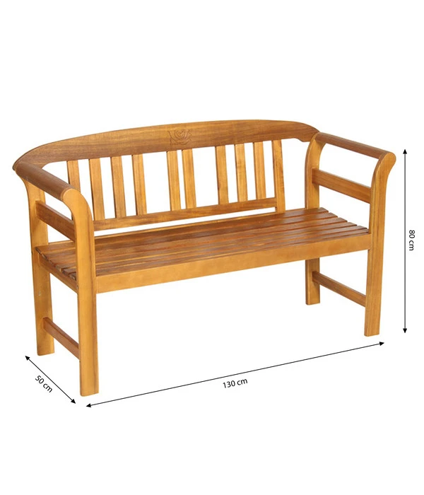 Wie aus einem Guss wirkt sie, die Acamp Gartenbank Batam. Das liegt am liebevollen Design mit den breiten Streben, den massiven Beinen und den sanften Rundungen an Arm- und Rückenlehne. Es liegt aber auch am Material, aus dem sie angefertigt wurde: FSC®-zertifiziertes Akazienholz. Es verleiht ihr mit seiner charakteristischen Maserung eine individuelle Note und eine einladend warme Ausstrahlung. Übrigens: Akazienholz ist eines der härtesten Hölzer und eignet sich durch seine Witterungsbeständigkeit ideal für den Außeneinsatz.