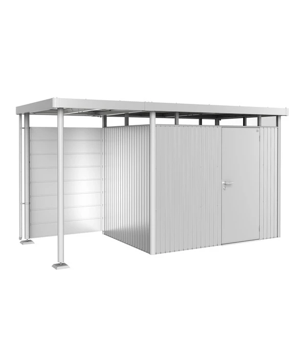 Mit der Installation der HighLine®-Wand entsteht spielend leicht eine sicht- und windgeschütze Oase. Durch die Verwendung der zusätzlichen Seitenwand erhalten Sie einen von drei Seiten geschützten Bereich, der sich im Alltag als ausgesprochen nützlich erweist. Hier können Sie von nun an Ihre Fahrräder, das Gokart der Kinder, Ihre Schubkarre oder Ihre Wäsche während eines kurzen Schauers abstellen. Auch bei Ihrer Grillparty weichen Sie, wenn ein paar Regentopfen fallen, kurzerhand hierhin aus. Greifen Sie zu und bestellen Sie online die Biohort Rückwand HighLine®, das clevere Zusatzelement für Ihren Schuppen mit Seitendach.