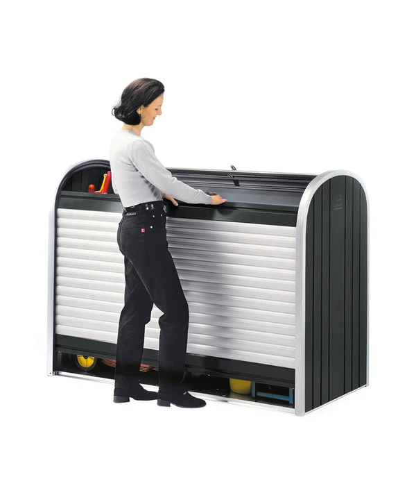 Mit Leichtigkeit Ordnung ins Heim bringen – das wünschen sich viele. Mit dem sehr praktischen Biohort StoreMax® sieht Ihr geliebter Garten im Handumdrehen aufgeräumt und gut strukturiert aus. Lassen Sie sich vom funktionalen Design der Box begeistern und verwenden Sie die Gartenbox zum Unterstellen Ihrer Gartengeräte, Fahrräder oder einer Mülltonne. Damit hat das Chaos im Garten ein Ende. Eine robuste Zylinderschloss-Verriegelung an der Box schützt zuverlässig Ihre Wertgegenstände und Werkzeuge vor unerlaubtem Zugriff. Mithilfe leicht gleitender Rollläden und dem zweigeteilten Öffnungssystem finden Sie schnell die Dinge, die Sie gerade benötigen. Zudem macht eine integrierte Federunterstützung die Bedienung der Biohort StoreMax® kinderleicht.