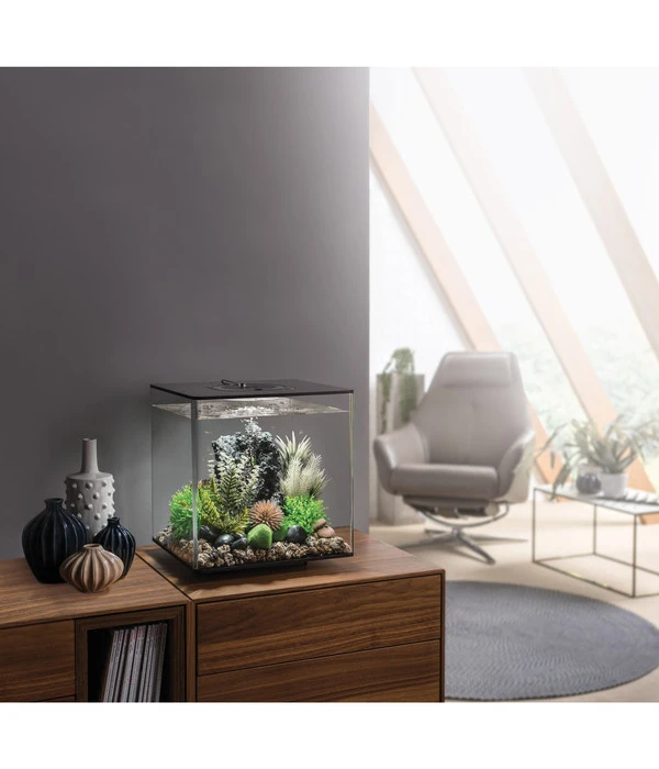 Aus Pflanzen, Korallen, Steinen und andere Deko-Elementen eine Unterwasserlandschaft zu gestalten ist ein faszinierendes Hobby. Und ein neuer Trend der Aquaristik, der sich auch in modern cleane Wohn-Interieurs optimal einfügt bzw. diese mit einer extravaganten Note bereichert. Mit dem biOrb® Aquarium CUBE 30 MCR können wir Ihnen aber ein ganz besonderes Modell anbieten, das Ihre Unterwasserkreationen in verschiedenen Farben aufleuchten lässt: Mal grün, mal blau, mal violett – bis zu 16 Farben können Sie ganz einfach per Fernbedienung auswählen. Und das ist noch lange nicht alles. Sie bestimmen per Fernbedienung auch, wann es Tag und wann es Nacht ist in Ihrer Unterwasserwelt. Bis zu 4 Zeitzyklen lassen sich ebenfalls ganz bequem programmieren und bei Bedarf ändern. Gönnen Sie sich für Ihren Einstieg in die Nano-Aquaristik etwas Besonderes: das biOrb® Aquarium CUBE 30 MCR! Es kommt als Komplett-Set zu Ihnen, so dass Sie gleich starten können!