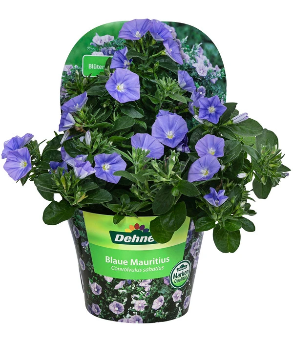 Diese Sommerblume ist zwar nicht ganz so selten wie die berühmte Briefmarke, aber für Kenner wie für Blumen-Laien immer wieder ein besonders reizvoller Anblick. Intensiv blau leuchten die offenen Blüten der dekorativen Zierpflanze von Mai bis September und bilden dabei einen attraktiven Kontrast zu dem hellen, leicht silbrigen Laub. Mit ihrem hängenden Wuchs ist die Blaue Mauritius die ideale Bewohnerin für sommerliche Balkonkästen oder Ampeln, von denen sie ihre langen Triebe mit den prächtigen blauen Blüten herabhängen lassen kann. Die Hängepflanze gehört zur Familie der Winden, die normalerweise kein Gärtner gerne in seinem Garten sieht. Die Blaue Mauritius aber hat mit ihren wilden Schwestern nicht viel gemeinsam. Ursprünglich stammt sie aus der Mittelmeerregion, weswegen sie bei uns auch nicht winterhart ist und ausschließlich als einjährige Zierpflanze kultiviert wird.