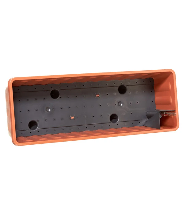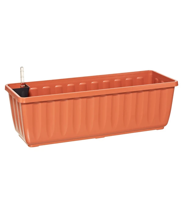 Nun haben Sie den Blumenkasten nach Hause gebracht und können ihn ganz einfach einsetzen. Das Wasser wird über die kleine Öffnung in den Unterboden eingefüllt. Die Wasserversorgung Ihrer Lieblinge erfolgt dann über erdgefüllte Kegel. Diese sind als Löcher im Unterboden leicht erkennbar. Ein paar Tage später fragen Sie sich vielleicht, ob Sie erneut gießen sollten? Die Antwort hat der Dehner Blumenkasten Aqua-Flor Plus mit Bewässerungssystem bereits für Sie parat. Der Wasserstandsanzeiger informiert Sie stets über den genauen Wasserstand. Den Sommer über hat ihnen der Blumenkasten gute Dienste geleistet. Nun kommt die kalte Jahreszeit – was tun? Der Blumenkasten ist frostbeständig, lässt sich jedoch im Winter auch gut abbauen und stapeln. Sie haben einen zuverlässigen Begleiter für sich und Ihre Pflanzen erworben.