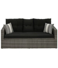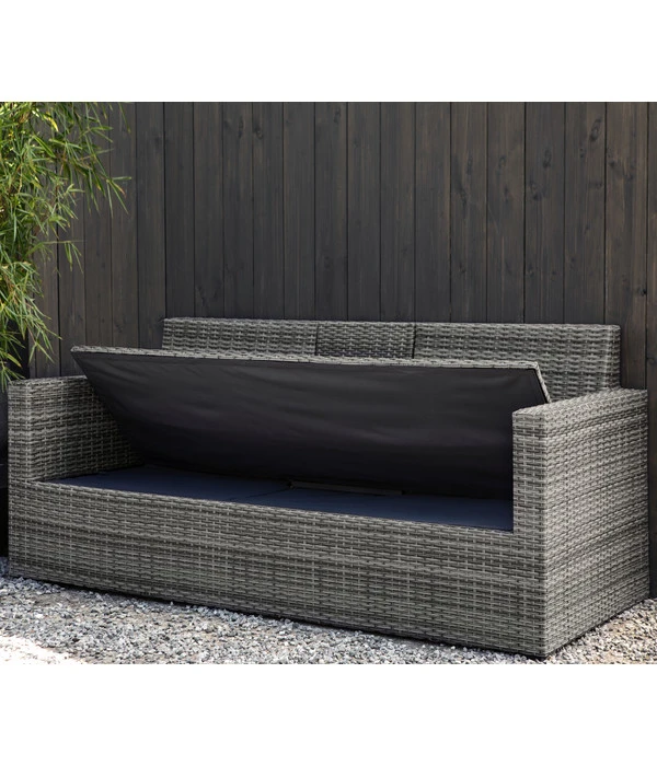 Wie schön, dass es jetzt Gartenmöbel gibt, die den gleichen Komfort bieten wie die Indoor-Möbel. Und die mit dem gleichen hohen Anspruch an Design und Qualität gefertigt werden, aber zugleich mit bester Wetterfestigkeit punkten. Und obwohl diese vielen Pluspunkte inzwischen auf viele Gartenmöbel zutreffen, freuen wir uns, Ihnen mit der Dehner Flecht-Truhenbank ‘Föhr‘ ein ganz besonderes Modell vorstellen zu können. Ein Loungesofa, das Sie mit einem Komfort verwöhnen wird, den so manches Indoor-Sofa nicht hat. Lassen Sie sich bald in jeder freien Minute auf Ihr neues Gartensofa sinken und spüren Sie, wie die vielen Polster und Kissen Sie wunderbar weich umfangen und Ihnen die Stunden versüßen. Mit einer stattlichen Breite von 188 cm bietet die Dehner Flecht-Truhenbank ‘Föhr‘ bequem bis zu 3 Sitzplätze; sind Sie allein, können Sie sich aber auch lang darauf ausstrecken und ein kleines Nickerchen machen. Und ist schlechtes Wetter angesagt, verstauen Sie einfach die Polster und Kissen in dem Raum unter der Sitzfläche. Lassen Sie jetzt die Dehner Flecht-Truhenbank ‘Föhr‘ Ihren Sommer noch schöner machen!