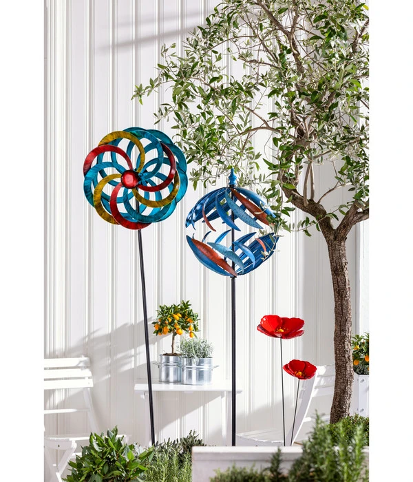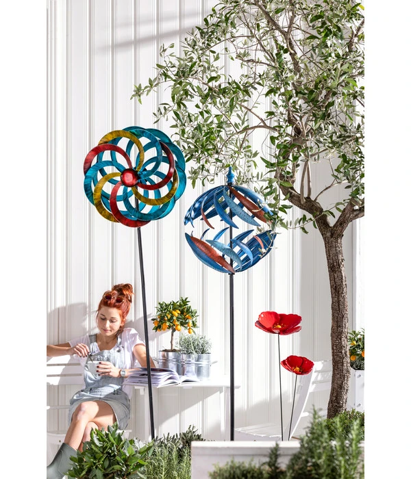Das Dehner Metall-Riesen-Windrad besitzt ein hochwertiges Kugellager, welches es besonders leichtläufig macht. Außerdem ist es aus robustem, frost- und wetterbeständigem Metall hergestellt. Sie werden also viele Jahre Freude an Ihrer neuen Garten-Dekoration haben. Überlegen Sie sich jetzt schon ein schönes Plätzchen dafür: im Beet, zwischen Stauden, neben einer Sitzecke oder im Eingangsbereich – vieles ist möglich mit diesem außergewöhnlichen Blickfang! Also warten Sie nicht und bestellen Sie das Dehner Metall-Riesen-Windrad am besten sofort!