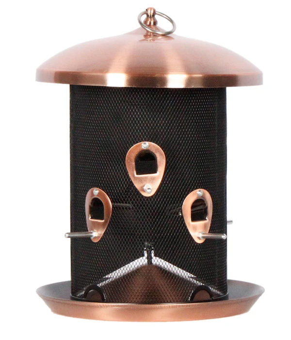 Es gibt Futterspender und besondere Futterspender. Kein Wunder, dass Sie sich für die edel wirkende Dehner Natura Futtersäule Restato interessieren. Damit machen Sie nicht nur Ihren gefiederten Nachbarn eine große Freude, sondern auch sich selbst. Denn ganz gleich, ob Sie die vielseitige Futterstelle in einen Baum im Garten oder auf Ihren Balkon hängen, werden Sie schon dessen schmucken Anblick mit den kupferbeschichteten Metallteilen genießen. Und die Wildvögel? Die genießen Ihr unschlagbares Futterangebot. Dank zweier getrennter Futterkammern servieren Sie auf der einen Seite zum Beispiel köstliche Erdnüsse, während auf der anderen leckeres Streu- oder Mischfutter in die Auffangschale rutscht. Hängen Sie also schon bald Ihr elegantes Vogelrestaurant an der praktischen Aufhängevorrichtung auf! Es wird sich rasend schnell in der Vogelwelt herumsprechen, dass es sich bei Ihnen köstlich speisen lässt, in Ihrer Dehner Natura Futtersäule Restato!
