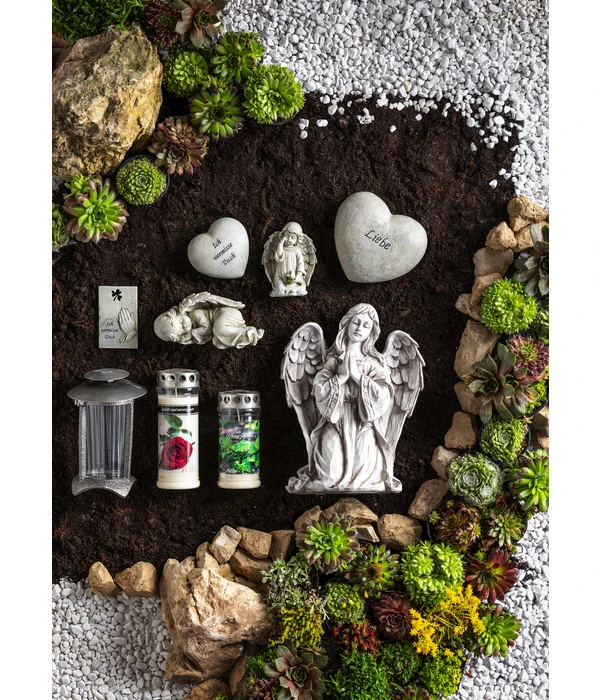 Sie überlegen, eine Ecke in Ihrem Garten zu einem ganz besonderen Ruheort zu machen? Dann lassen Sie den Dehner Polyresin-Engel knieend dort zu Ihrem Schutzengel werden! Er erzeugt ein Gefühl der Geborgenheit und Harmonie bei jedem Betrachter, der ihn in Ihrem Garten, auf dem Balkon oder Ihrer Terrasse erblickt. Auch wenn Sie das Grab eines Angehörigen mit einem besonders schönen Dekoelement schmücken wollen, eignet sich dieser Engel hervorragend. Mit seinem andächtigen und edlen Äußerem wacht er über jeden Ort, an dem man ihn positioniert. Außerdem ist die Figur so detailreich gearbeitet, dass man immer wieder etwas Neues entdeckt: die feinen Gesichtszüge, die filigranen Federn ihrer Flügel oder zarten Verzierungen ihres Gewandes.