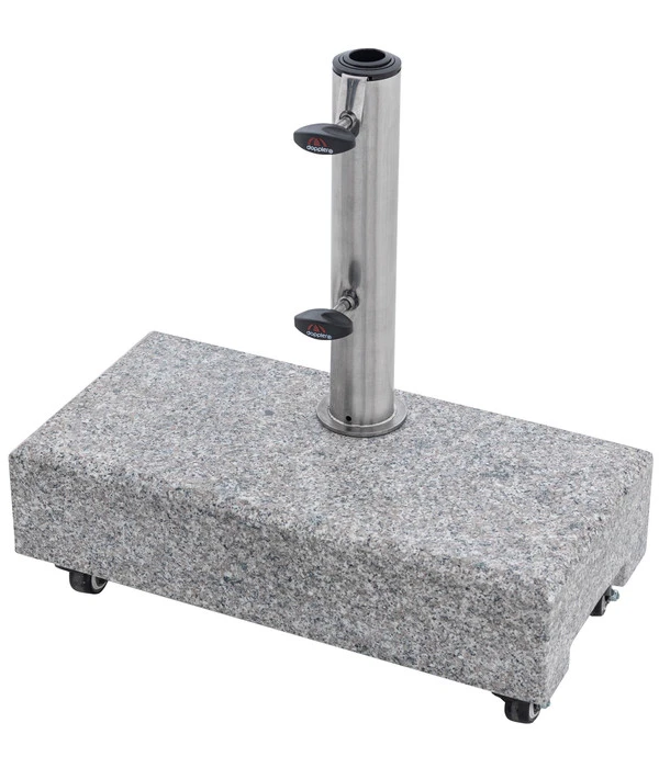 Sie wollen sich einen effektiven Sonnenschutz für Ihren Balkon zulegen und suchen dafür noch nach einem hochwertigen Schirmständer? Dann wird Ihnen dieses Exemplar der Marke Doppler sehr gefallen! Der robuste Ständer sorgt dafür, dass Ihr Sonnenschirm immer einen stabilen Halt hat und Sie ihn an dem Ort Ihrer Wahl aufstellen können. Dabei helfen Ihnen auch die Rollen an seiner Unterseite, mit denen sich der Sonnenschutz nach Ihren Vorstellungen versetzen lässt. Der schicke Granitstein verleiht dem Schirmständer eine besonders edle und kostbare Note, die nicht nur Ihnen, sondern auch Ihren Gästen auffallen wird. Laden Sie diese doch gleich zum Kaffeetrinken auf dem Balkon ein und genießen Sie die Sonnenstunden im Freien!