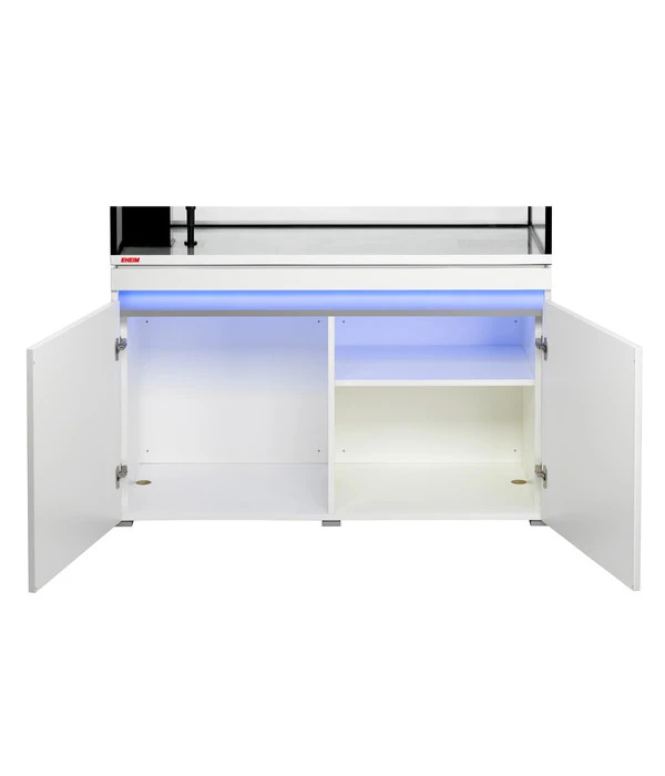 Der solide, stabile Unterschrank der EHEIM Aquarium Kombination incpiria 430 duo glänzt nicht nur durch sein modernes Design, er ist auch mit einer atmosphärischen LED-Beleuchtung ausgestattet, die Sie mittels einer Fernbedienung steuern können, wobei Ihnen 640.000 Farben und 20 Automatikprogramme zur Verfügung stehen.
