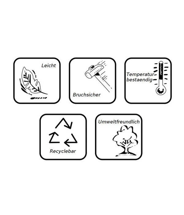 Der Kunststoff-Topf besteht aus äußerst robustem und qualitativ hochwertigem Kunststoff. Dank seines geringen Gewichts lässt er sich problemlos bewegen. Er zeichnet sich darüber hinaus durch seine ausgesprochene UV- und Frostbeständigkeit aus. Auf diese Weise ist er auch ideal für den Einsatz unter freiem Himmel geeignet. Gestalten Sie mit dem Kunststoff-Pflanztopf Ihre Einrichtung und Ihren Garten ganz nach Ihren Wünschen. Lassen Sie sich von diesem Pflanztopf überzeugen und bestellen Sie ihn am besten noch heute.