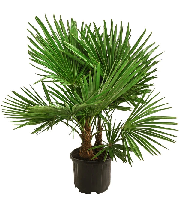 Nicht immer müssen exotische Schönheiten zugleich Mimosen sein. Mit der Hanfpalme können wir Ihnen eine der robustesten und frosthärtesten Palmen weltweit vorstellen. Heimisch ist diese im Norden Indiens bis Nordthailand und China, weshalb sie auch den Namen Chinesische Hanfpalme trägt. Im europäischen Raum begegnet man ihr in südlichen Gefilden mit mildem Klima, in mediterranen Gärten wie in Italien oder im Tessin in der Schweiz. Auch bei uns kann diese Palmenschönheit auf reizvolle Weise Gärten und Terrassen mit exotischen Flair verzaubern. Mit ihrer charakteristischen Optik – den fächerartigen Blättern, die vom Kopf aus nach oben austreiben und sich im zunehmenden Alter senken – braucht sie ausreichend Platz, um sich gut entfalten zu können. Da die einzelnen Stämme der Hanfpalme unterschiedlich groß sind, und dadurch ein buschiger und dichter Aufbau entsteht, wird die Palme zudem zum idealen Sichtschutz auf Terrasse oder Balkon.
