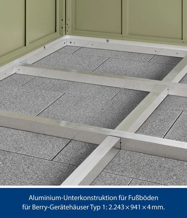 Vertrauen Sie auf Qualität und Stabilität – die Unterkonstruktion von Hörmann besteht aus robustem Aluminium und garantiert eine langlebige Lösung für Ihr Gerätehaus. Auch die Farbe fügt sich harmonisch in jedes Ambiente ein und verleiht Ihrem Gerätehaus eine professionelle Note. Bauen Sie auf eine solide Grundlage für Ihr Gerätehaus und lassen Sie sich von der Funktionalität und Stabilität der Hörmann Fußboden-Unterkonstruktion begeistern. Schaffen Sie eine verlässliche Basis für Ihre Projekte und schützen Sie Ihre wertvollen Geräte und Werkzeuge. Worauf warten Sie noch? Lassen Sie sich die Hörmann Unterkonstruktion für Ihren Fußboden im Gerätehaus bequem nach Hause liefern und bauen Sie auf ein tragfähiges Fundament!