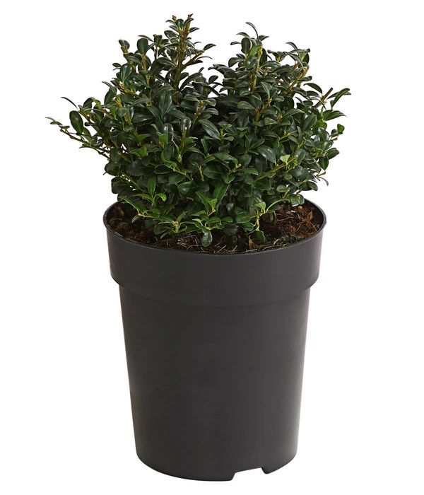 Ein dichter Wuchs und eine Vielzahl kleiner, immergrüner Blätter und dabei absolut unkompliziert und anspruchslos – das sind gleich drei Gründe, die für die Japanische Stechpalme sprechen. Die immergrünen Sträucher fügen sich vielseitig in die Gartengestaltung ein. Der Japanische Ilex setzt Akzente in Beeten und Rabatten, ist aber auch ein dekoratives Highlight in Pflanzgefäßen. Auch als pflegeleichter Grabschmuck wird der Japanische Iles gerne eingesetzt. Dabei erinnert die Pflanze sowohl im Aussehen, mit ihren kleinen, eiförmigen und leichtgewölbten Blättern, wie auch in den Verwendungsmöglichkeiten an einen Buchsbaum. Wie der beliebte Buchs kann auch der Japanische Ilex gut in Form geschnitten werden. Aus kleinen weißen Blüten im Mai/Juni entwickeln sich bis zum Herbst schwarze, kugelige kleine Beeren.