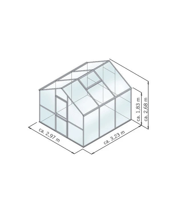 Mit einem KGT Gewächshaus Lilie III erhalten Ihre Schützlinge ein sicheres Dach über dem Kopf, in dem Sie dank der praktischen Funktionen stets für eine optimale Durchlüftung sorgen können. Zur Verfügung stehen hier die komfortabel breite, zweigeteilte Tür, das Dachfenster mit automatischem Fensteröffner und ein Rückwandfenster mit Handaufstellung.