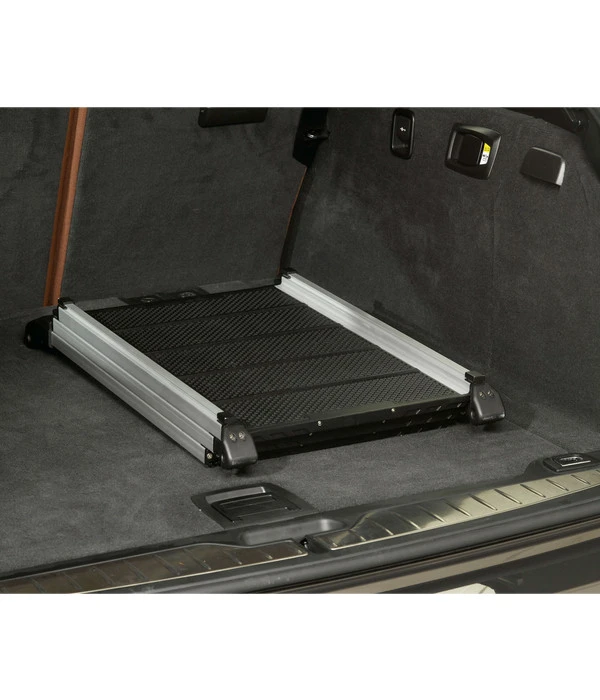 Wenn Sie Ihrem geliebten Vierbeiner einen flachen Ein- und Ausstieg ins bzw. aus dem Auto ermöglichen möchten, ist die kleinmetall® Hunderampe Dogwalk XL eine exzellente Wahl. Die 3-teilige, stufenlos verstellbare Teleskop-Rampe wurde speziell für Fahrzeuge mit einer gewissen Höhe konzipiert, beispielsweise für SUVs. Insbesondere für den Fall, dass Ihr Liebling an Gelenkerkrankungen leidet und sich schonen muss, empfiehlt sich der Einsatz der hochwertigen Konstruktion. Aber auch zur Vorbeugung gesundheitlicher Beeinträchtigungen kann die TÜV-geprüfte Vorrichtung genutzt werden: mithilfe der praktischen Hunderampe schont Ihr Haustier seine Muskeln und Knochen. Bei Bedarf können Sie das hochwertig verarbeitete Produkt von kleinmetall® auch im Innenbereich einsetzen. So ermöglicht die Rampe Ihrem Hund beispielsweise eine schmerzfreie Überwindung von Sofas oder Treppenstufen.