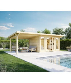 Wolff Finnhaus Gerätehaus Eleganto 3030, Inkl. Lounge Rechts Mit Fenstern, Ca. B782/H225/T318 Cm