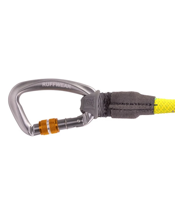 Die Hundeleine RUFFWEAR® Knot-a-Leash ist eine robuste Führleine, die aus einem starken, aber geschmeidigen Kernmantelseil besteht, wie sie im Klettersport sowie in der Bergrettung eingesetzt werden. Es handelt sich dabei um ein dynamisches Seil aus einem aus mehreren Einzelfäden zusammengedrehten Kern und einem darum geflochtenen Mantel. Ebenso wichtig für das sichere Band zwischen Ihnen und Ihrem Hund ist der hochwertige Karabinerverschluss. Für den Komfort beim Halten der RUFFWEAR® Hundeleine Knot-a-Leash sorgt der spezielle Griff, der gewebt ist und deshalb auch in einer schweißnassen Hand nicht rutscht.
