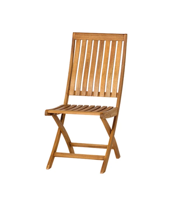 Für ein mediterranes Flair auf Ihrer Terrasse oder auf dem Balkon sorgt der Klappstuhl Paleros der Marke Siena Garden aus 100% FSC®-zertifiziertem Akazienholz. Das strapazierfähige Holz des eleganten Gartenmöbels ist lediglich geölt, so dass der edle Stuhl einen natürlichen Anschein erhält und die Maserung des Holzes ansprechend hervortritt. Die robusten Beschläge der Sitzgelegenheit für den Außenbereich sind aus widerstandsfähigem, galvanisiertem Stahl gefertigt. Dies macht den Gartenklappstuhl besonders wetterfest, da er hierdurch langfristig vor Korrosion geschützt ist. So trotzt der Holzklappstuhl jedem Wetter und kann bei einem plötzlich aufziehenden Regenschauer getrost auf der Terrasse verbleiben. Möchten Sie ihn dennoch schnell verstauen, lässt sich das hochwertige Sitzmöbel mit wenigen Handgriffen zusammenklappen und platzsparend im Geräteschuppen oder im Keller unterbringen.