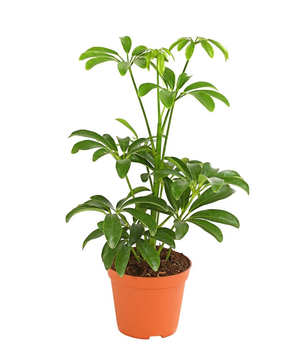Die strahlenförmig angeordneten, dunkelgrünen Blätter mit der gelbgrünen Zeichnung sind das dekorative Pfund, mit dem die Schefflera wuchern kann. Und das tut sie üppig, denn sie streckt sich wuchsfreudig bis in eine Höhe von 180-200 cm, behält dabei aber ihren kompakten, buschigen Wuchs und ihr attraktives Blattkleid. Mit der Sternaralie, wie die Zimmerpflanze auch heißt, entscheiden Sie sich für einen echten Klassiker, der seine Persönlichkeit mit Vorliebe in Einzelstellung präsentiert. Unterstützen Sie die dekorative Raumwirkung der Pflanze noch mit einem stilvollen Übertopf, der in Form und Farbe mit Ihrem Wohninterieur harmoniert.