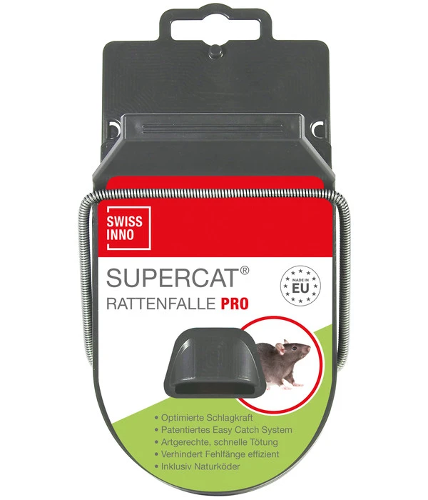 Wer ein Grundstück mit Garten, Schuppen, Garage oder Gerätehaus besitzt, hat eventuell schon bemerkt, dass sich manchmal uneingeladene Gäste einnisten. Insbesondere Ratten machen es sich gern überall im Outdoorbereich gemütlich, um hier und da für Verschmutzungen, Schäden und anderen Ärger zu sorgen. Swissinno bietet Ihnen zu diesem Zweck die Rattenfalle Supercat Pro, damit dem Treiben bald effektiv ein Ende gesetzt werden kann. Sie erhalten eine stabil gebaute Falle, die zuverlässig funktioniert und für einen sicheren Gebrauch steht.