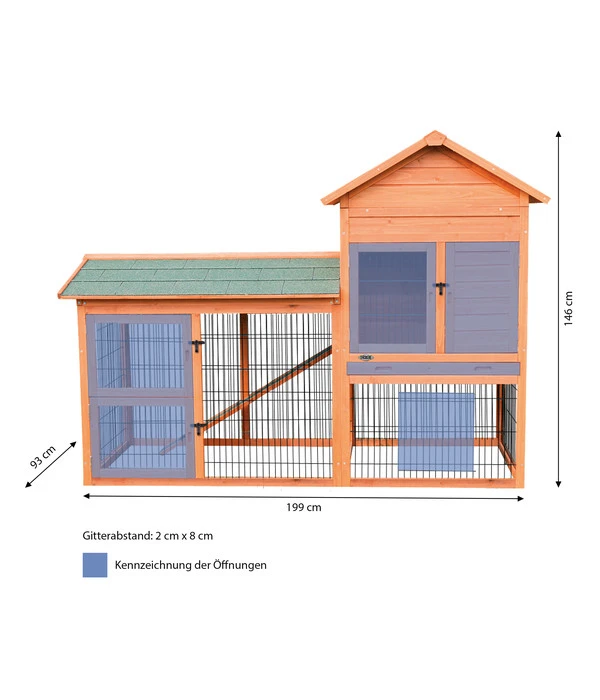 | 2 Holz-/Gittertüren im Freilauf: | 45/30 cm (B/H) |